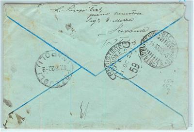 Item: Registered cover to Genova, forwarded ro Pozzuoli (Napoli)