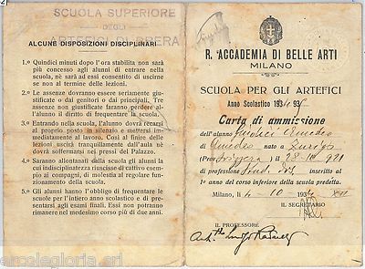 Tipologia: Carta d’ammissione alla Reale Accademia delle Belle Arti, Milano Brera