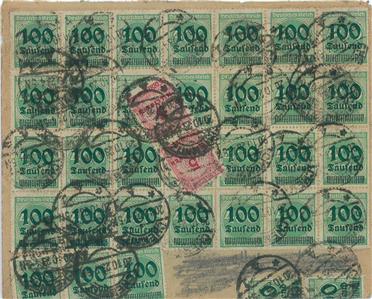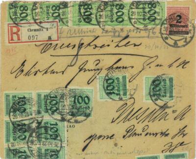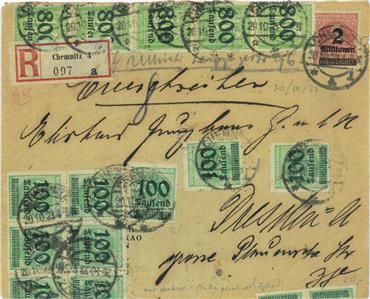 Item: 20 Billion fare, on 1st day of new fare! Very nice registered cover from Chemnitz to Breslau. All stamps PERFECT! Very nice piece, exhibition item!