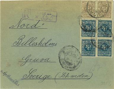 Item: Registered  cover from Kaunas to Sweden with transit and arrival postmarks