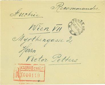 Item: Registered cover from Kaunas to Wien