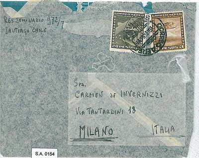 Country: Chile Item: Cover Year: 1951 Destination: Italy Arrival cancelation: Yes