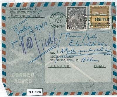 Country: Chile Item: Cover Year: 1955 Destination: Italy Arrival cancelation: Yes
